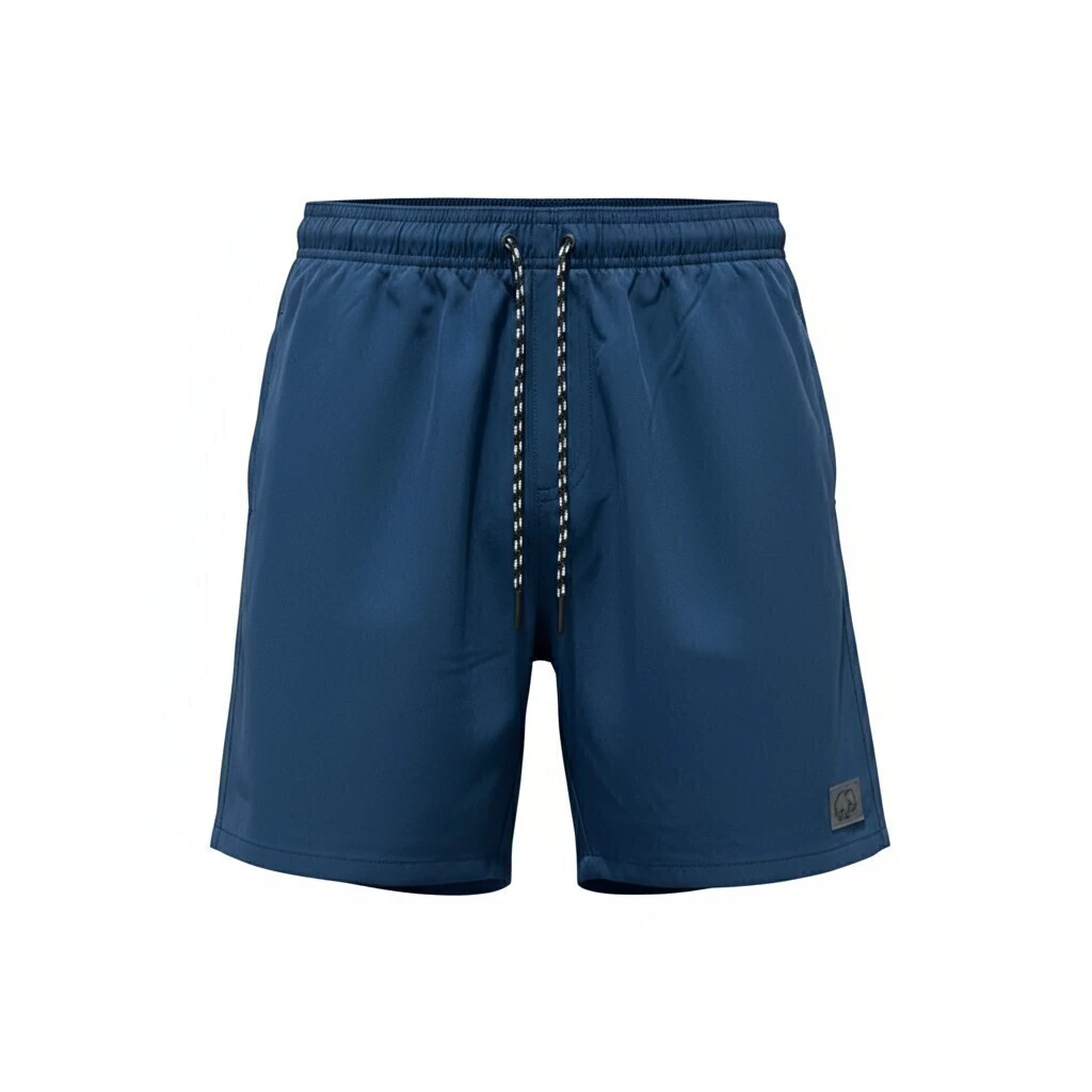 - Short de baño liso, con cintura elastizada y ajustable con cordones. Secado rápido.